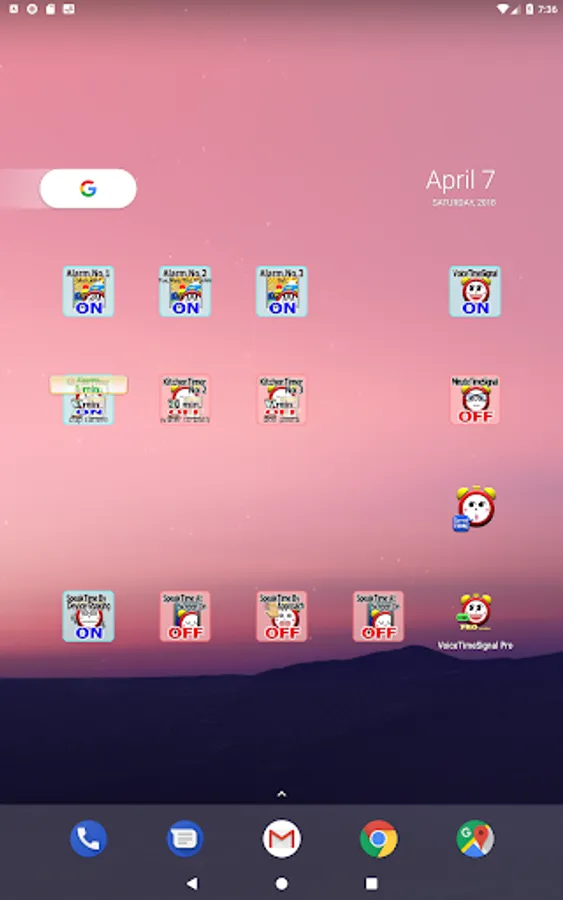 (7) There is another app 'VoiceTimeSignal Pro for Galaxy' dedicated to the Galaxy series which is improved for the time signal had might be delayed in the Galaxy series. Please use the app if you are using a device of Galaxy series.