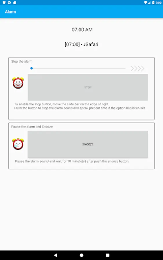 9. 'Automatic alarm stop' option has been added to prevent keep ringing the alarm until the battery gets empty.