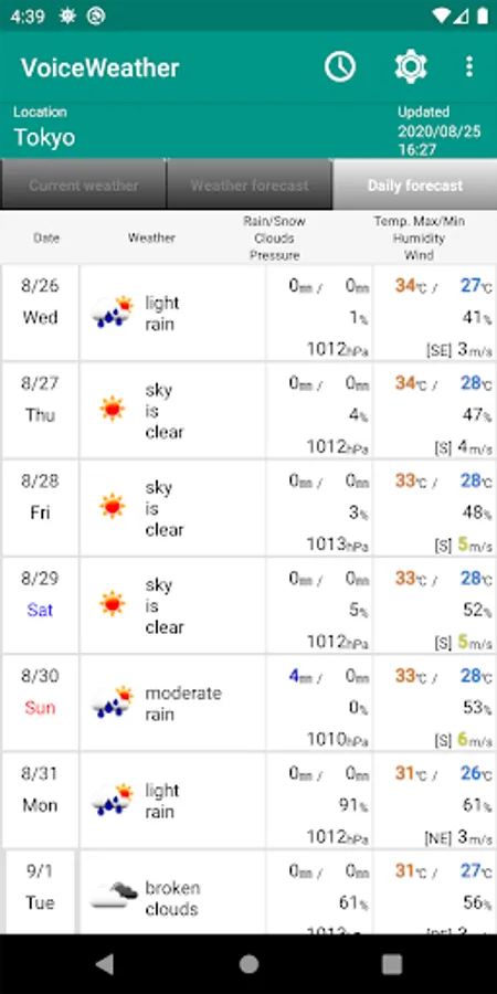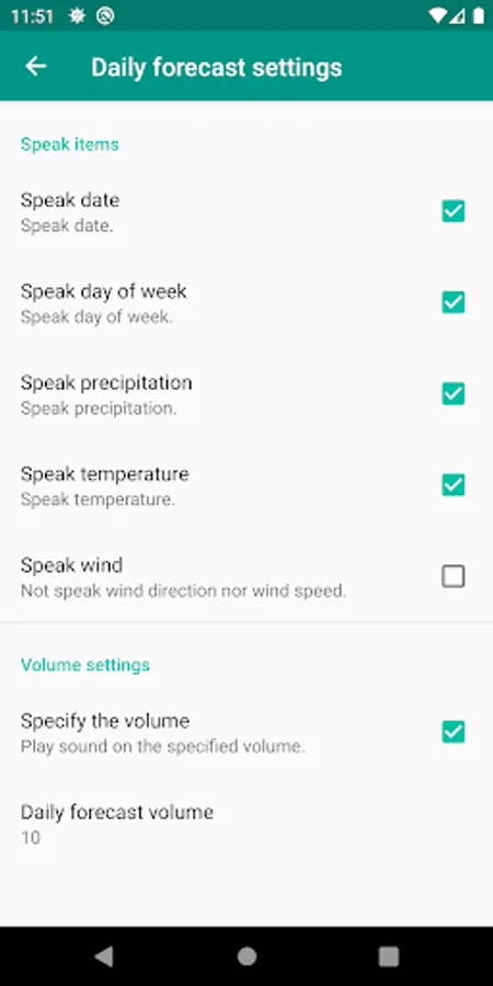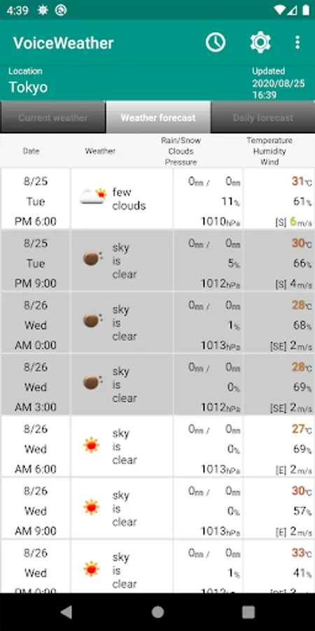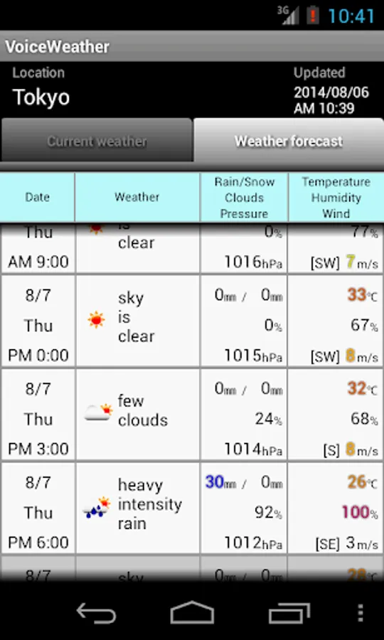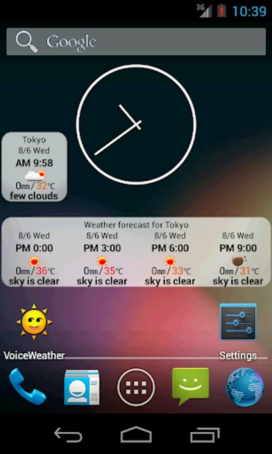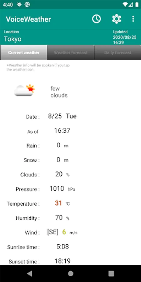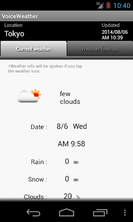 Current weather information or a weather forecast will be spoken when you tap on the application widgets on the screen.