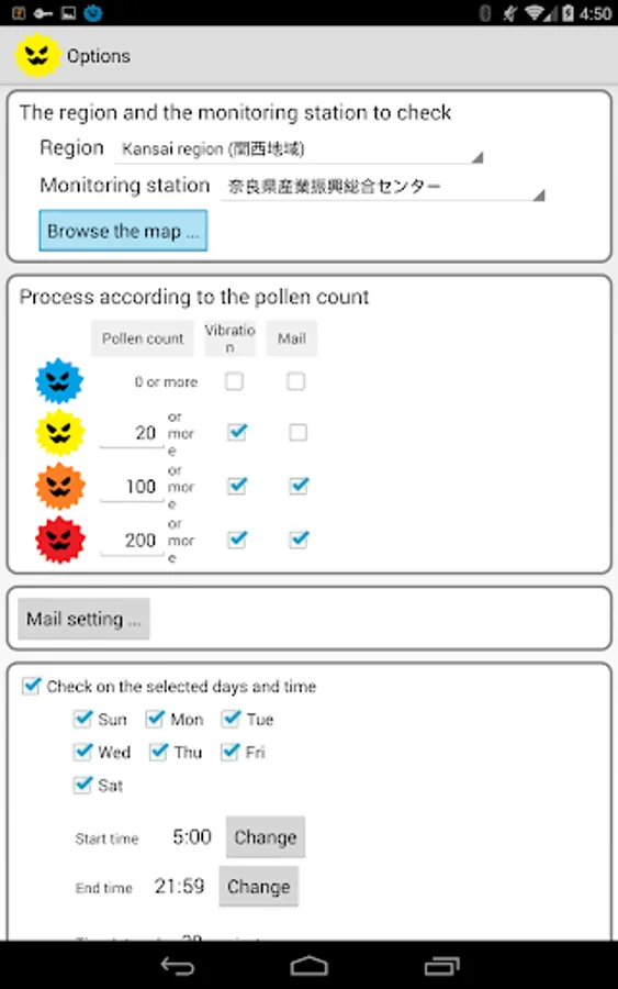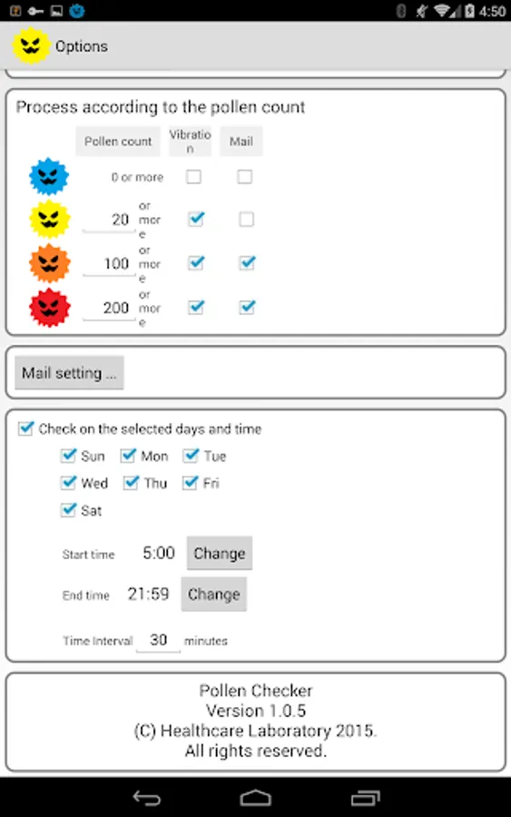 This application check the count of pollen and notify with vibration and sending e-mail.