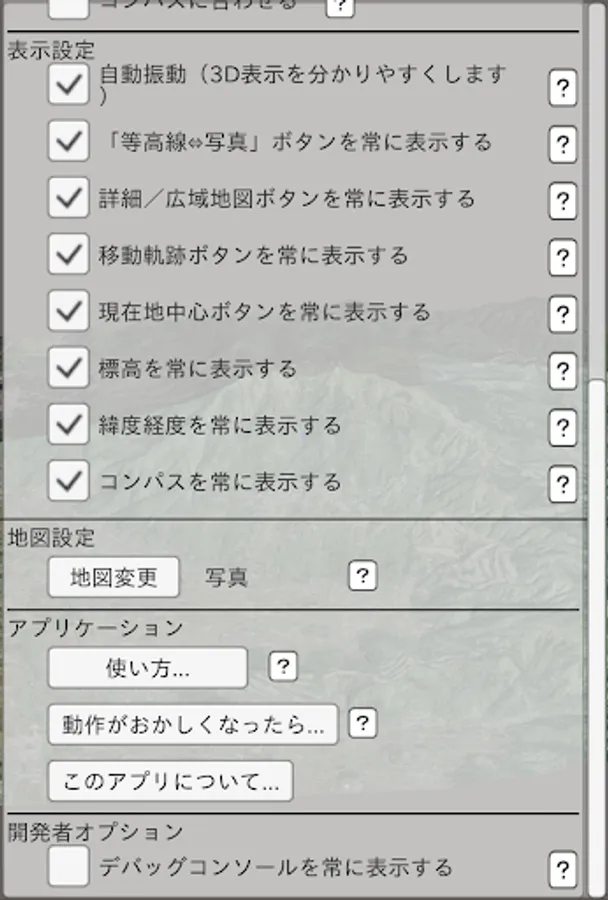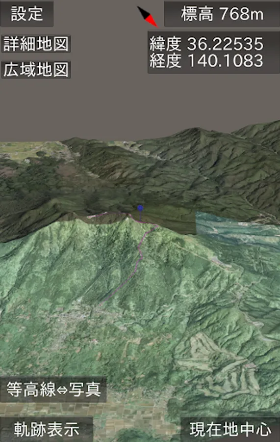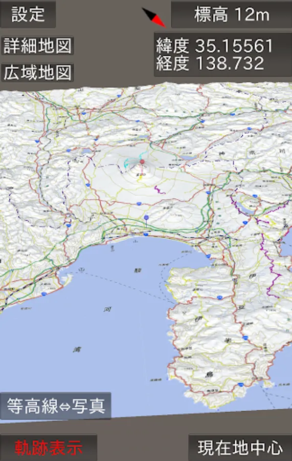 等高線/写真地図を立体的に3D表示できるアプリです。