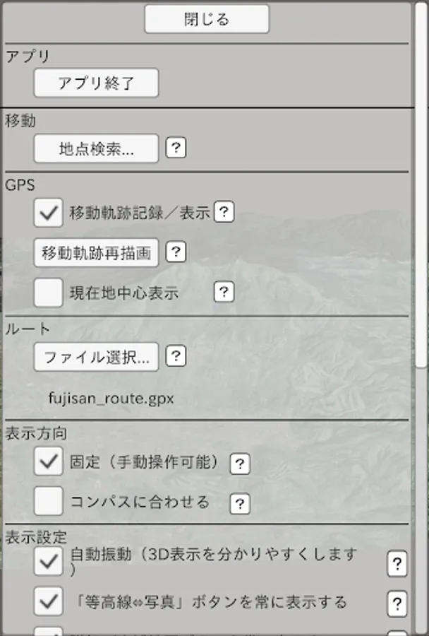 ・GPX形式 or TRK形式の指定軌跡ファイルの表示に対応
