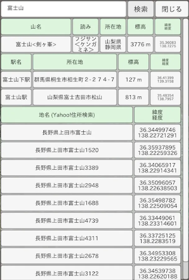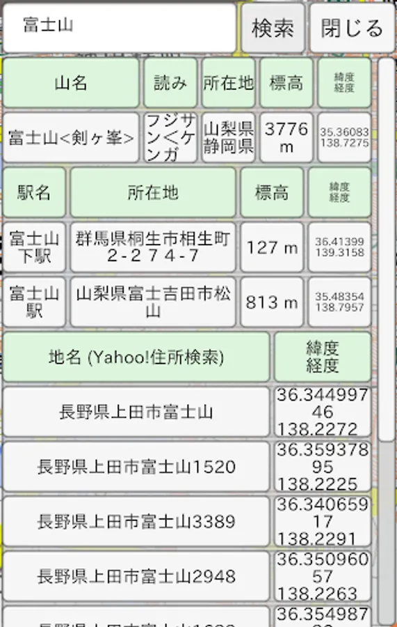 ・山名を検索して、検索結果の位置にジャンプすることができます。