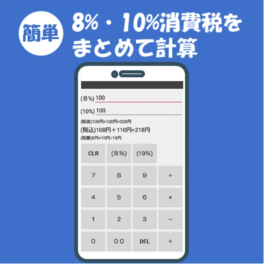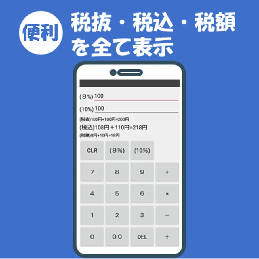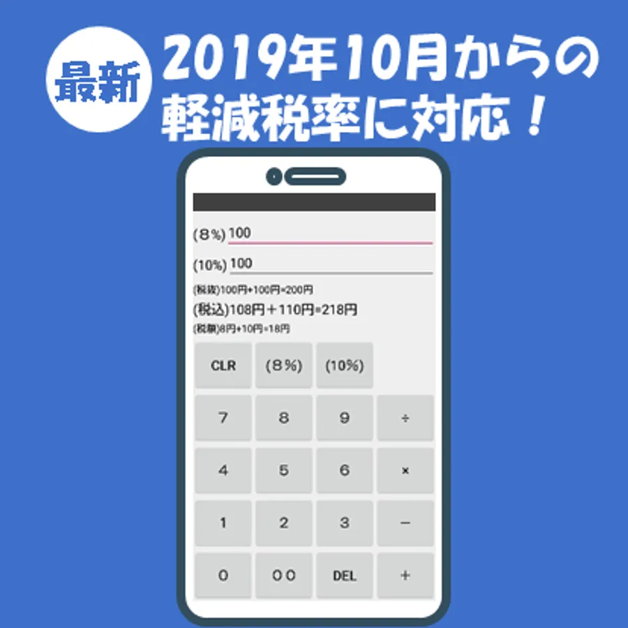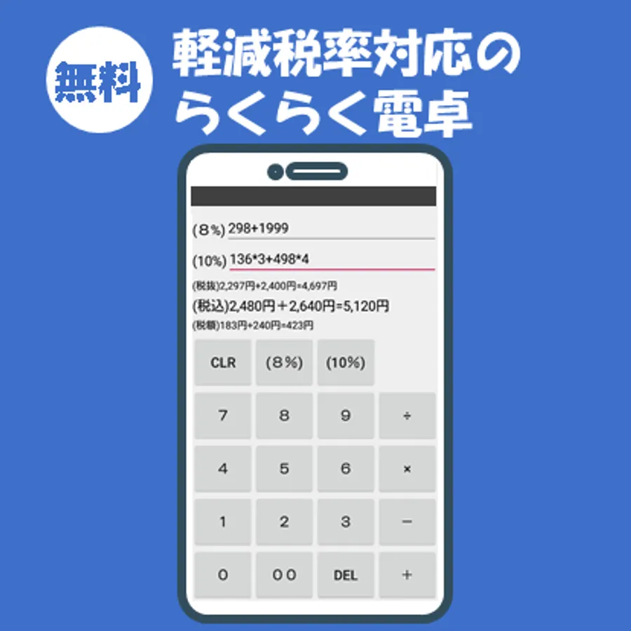 "Reduced tax rate Raku-Raku Calculator" is a free calculator that supports the reduced tax rate (8% / 10%) of consumption tax.