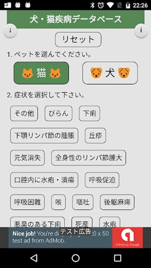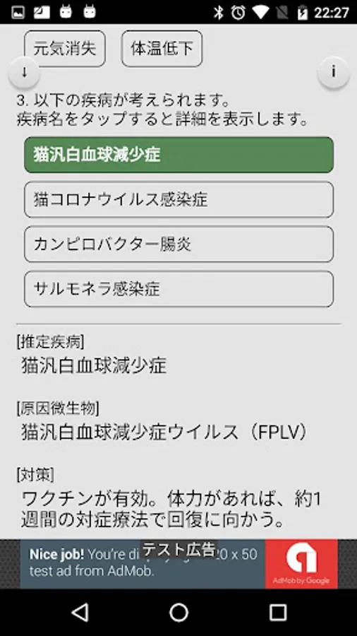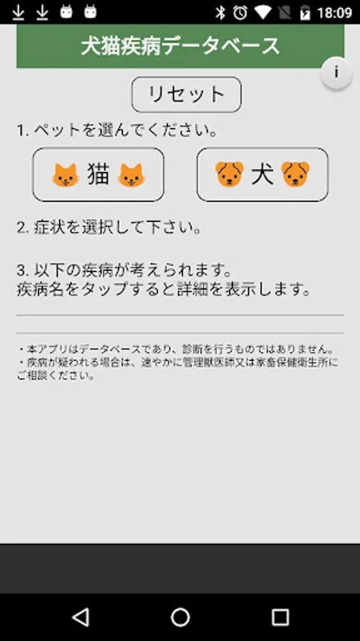 • Select the symptoms such as "fever", "sneezing", "nasal discharge", "diarrhea"