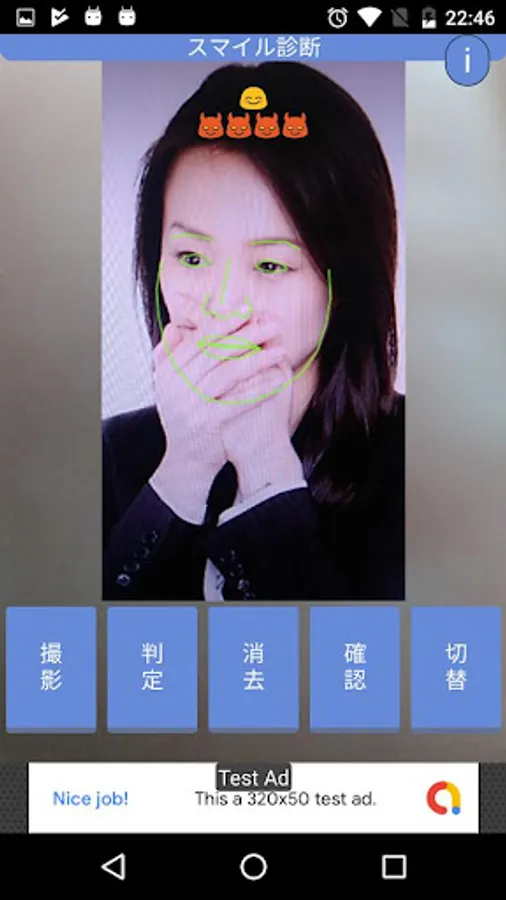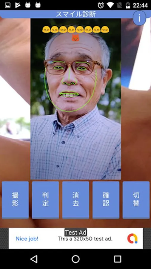 本アプリは撮影した表情から笑顔・怒りを10段階で判定します。