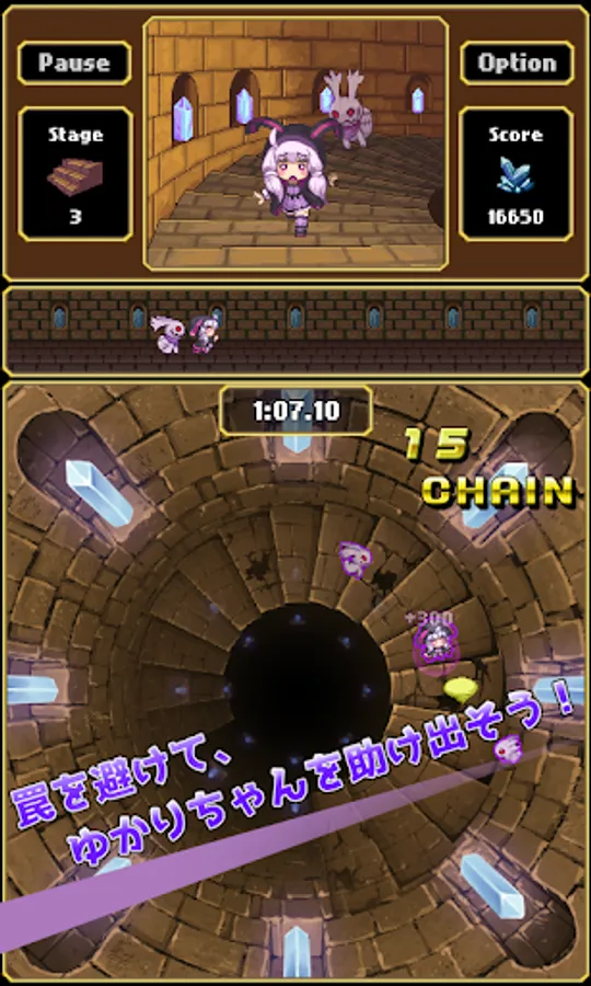 簡単タップで罠がいっぱいの階段を上りつつ、大穴からゆかりちゃんを救い出そう!