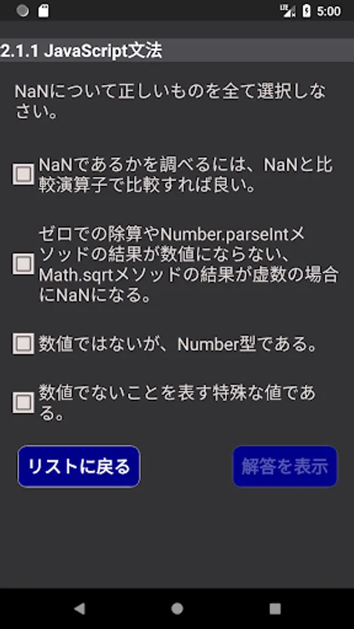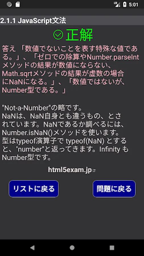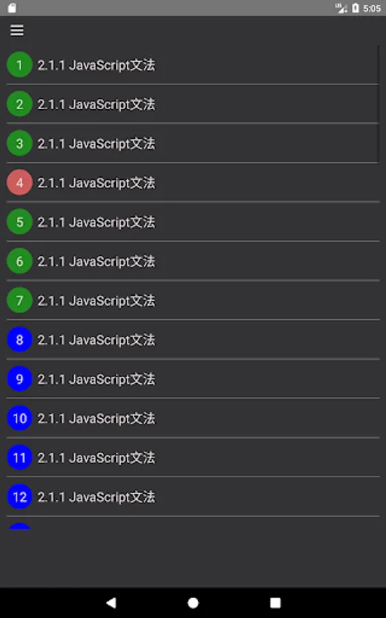 * In the example list, the problem that could be answered correctly is displayed in green, the problem in which the user answered by mistake is displayed in red, and the problem in unanswered answer is displayed in blue.