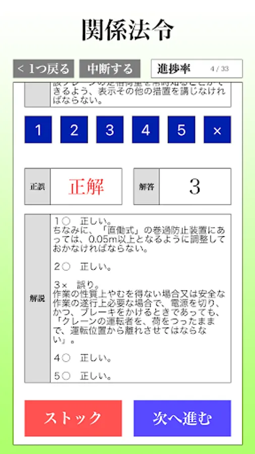 Some people may think that the number of questions recorded is small, but since many of the same questions as past questions are asked in the crane derrick operator test every year, it is possible to pass the questions in this app. Is possible.