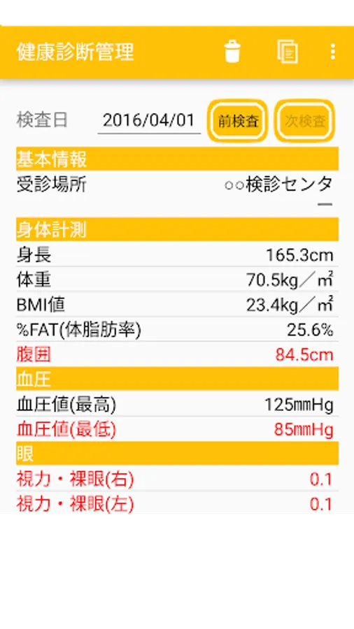 健康診断や人間ドックを受診した際の検査値を管理できるアプリです。
