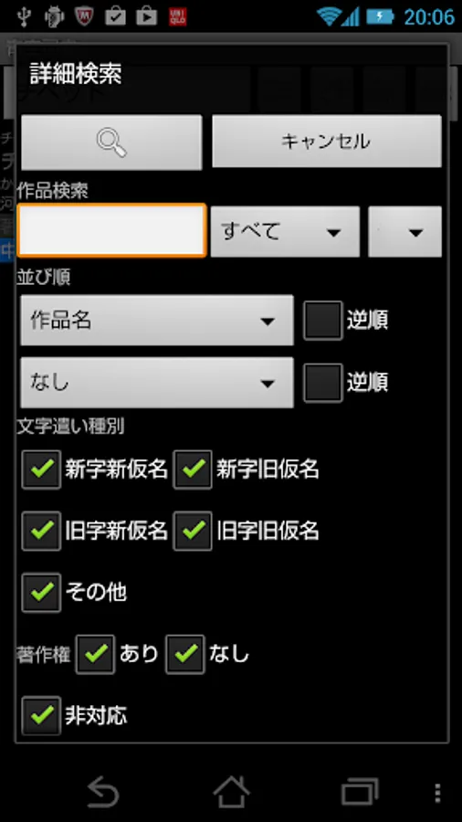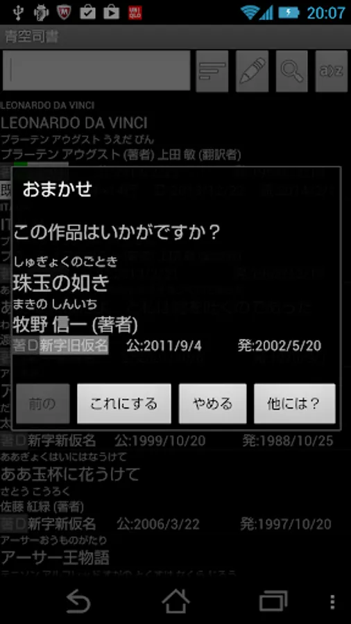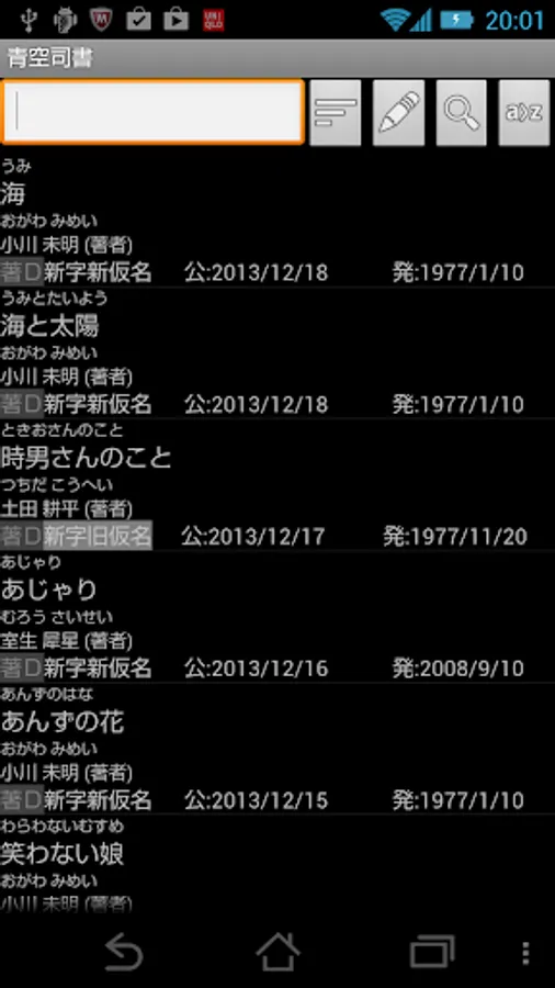 ● 青空文庫/テキストファイルを一覧から簡単に検索できる。