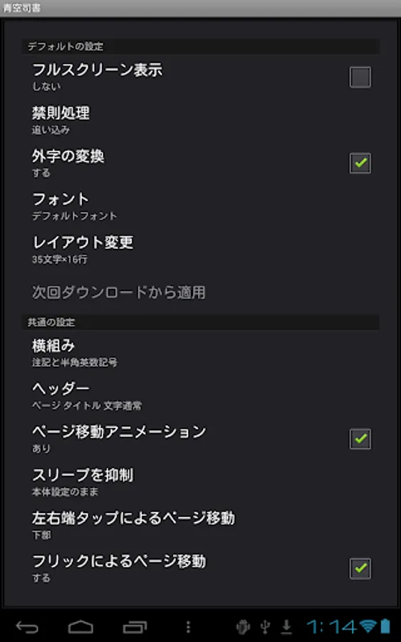 □縦書き画面レイアウトの変更(文字の大きさ、文字間隔、余白、画面の向き)
