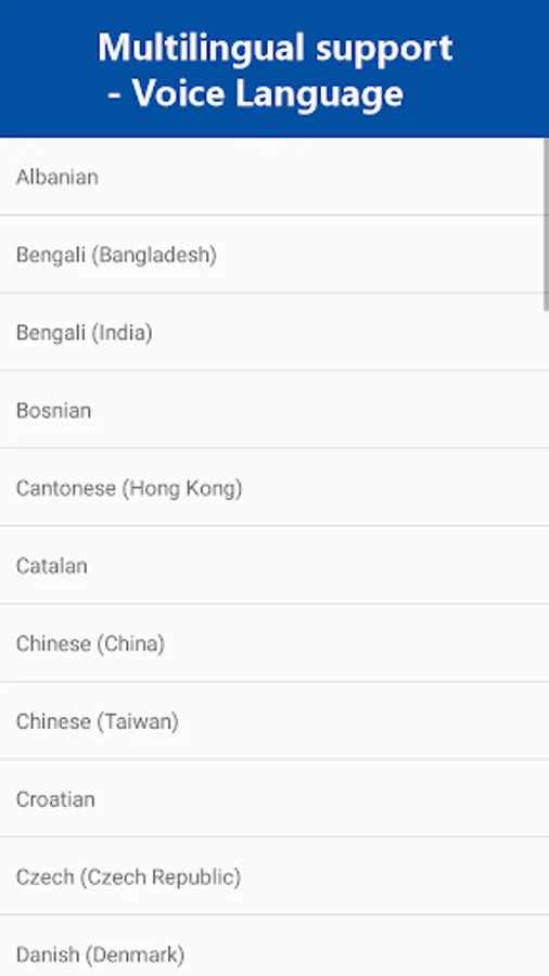This application uses Google's TextToSpeech (TTS) feature, so it can use multiple languages.