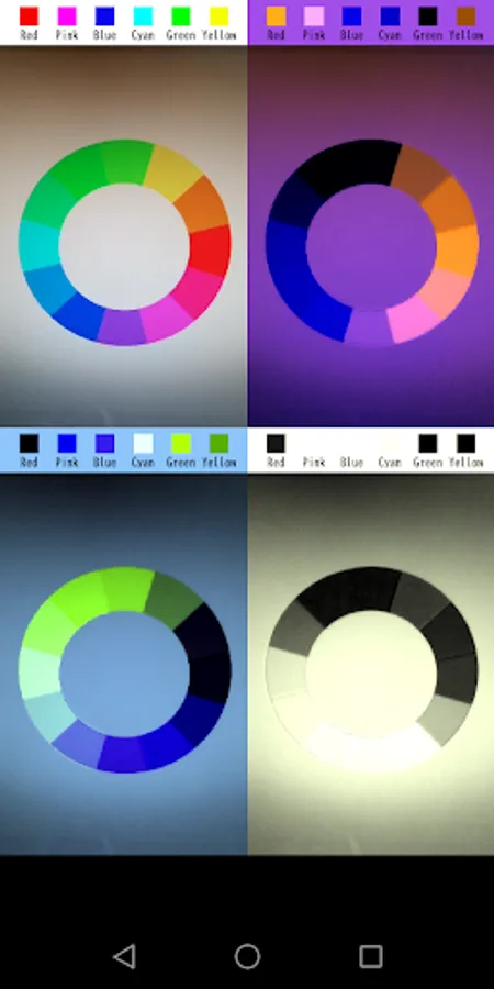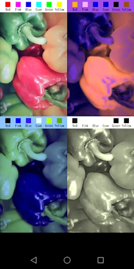 This app show three images with different color conversion at once to make it easier for the various types color blind people to distinguish colors.