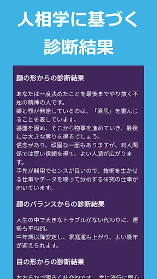 The app uses the latest technology to extract facial features and then determines which type of phenology it applies to.