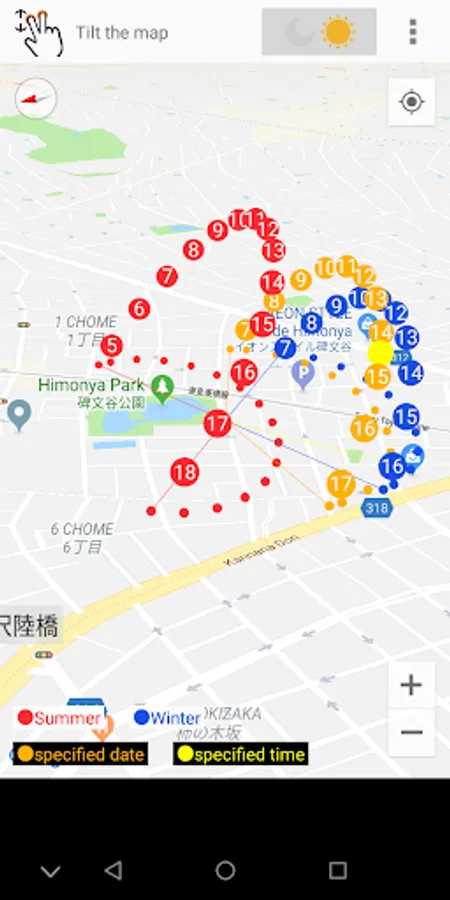 You can also go to the world's favorite places on GoogleMap and display the sun's trajectory in that place in 3D.