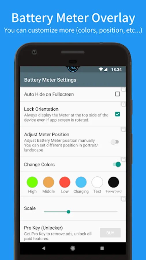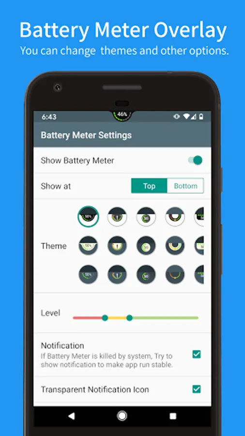 Battery Meter Overlay always shows the battery percentage at the top of screen.