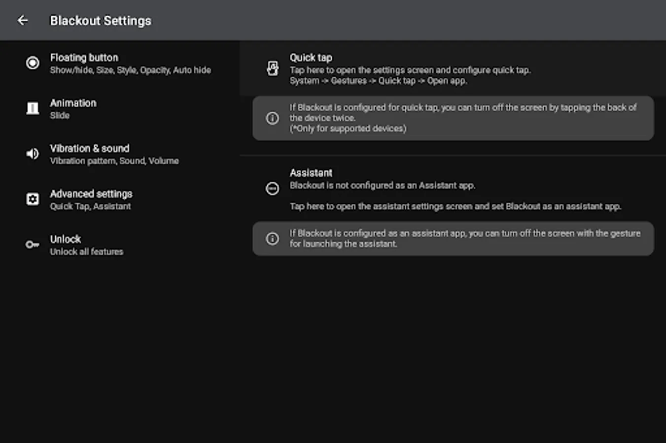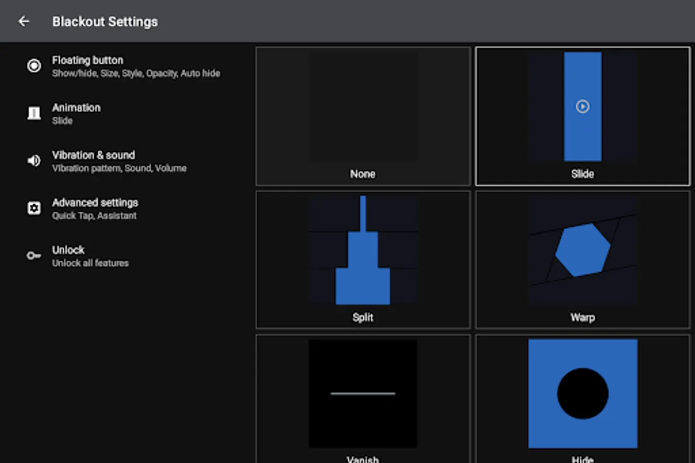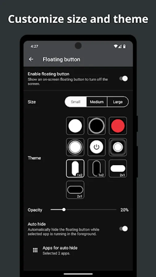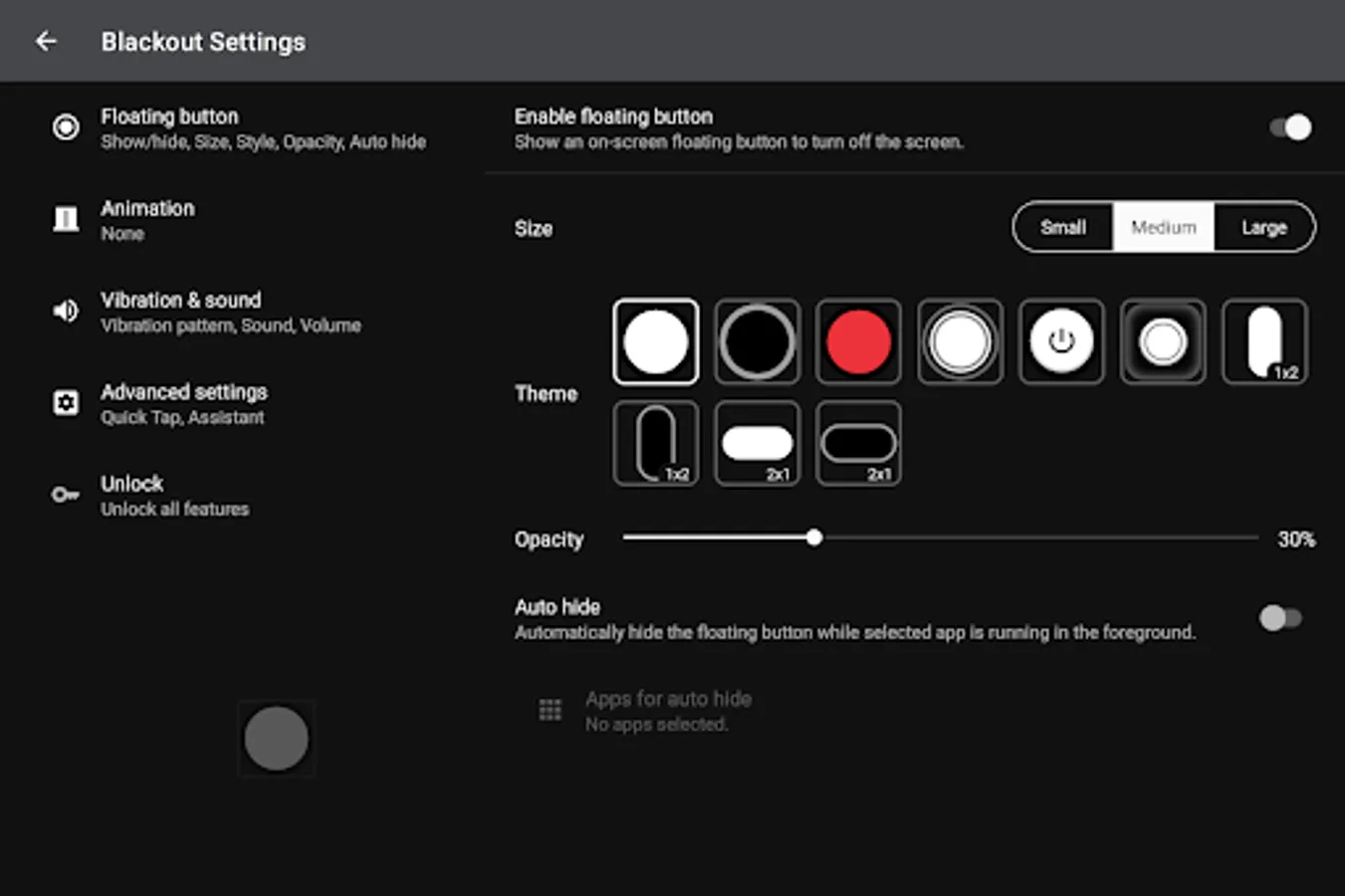 Blackout allows you to turn off the screen with a single tap of the on-screen floating power button.