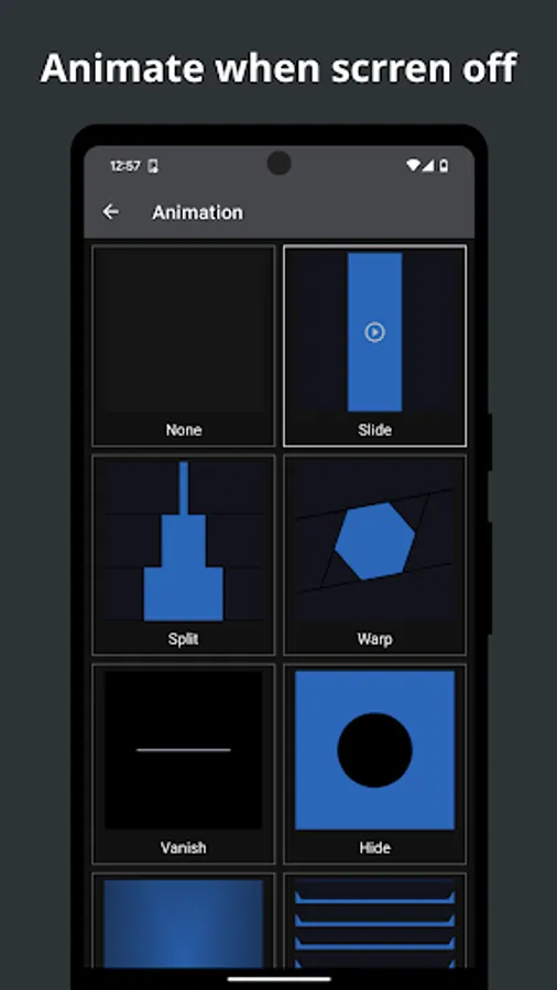 ✓ Show an animation when turned off the screen