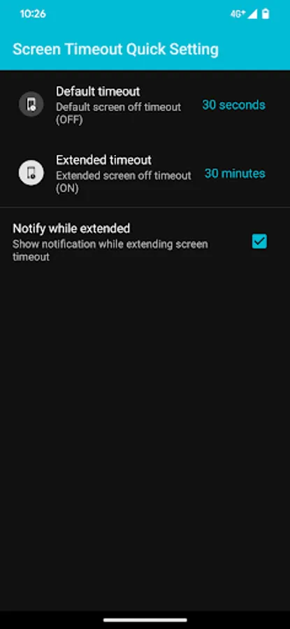 This application adds a quick setting to toggle the screen off timeout (the time until your phone goes to sleep) with a single tap.