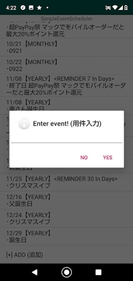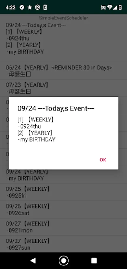 For example, if you register an event that you tend to forget, such as the birthday of an acquaintance such as family or friends, this app will notify you on that day.