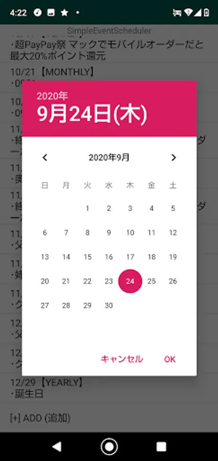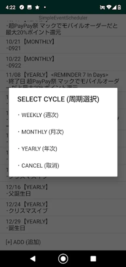 In addition, if you register an event on a monthly or weekly basis, you can register an event notification on the relevant day of the week or the relevant day of each month.