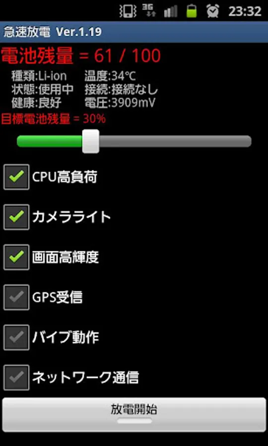 Change text color according to the amount of battery / remaining time display / discharge of the battery temperature display Fahrenheit Ver1.33