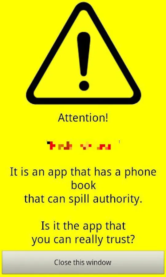 This app will display a list of apps and an Internet connection permission to handle information in the phone book (contacts) in the installed application with sufficient authority.