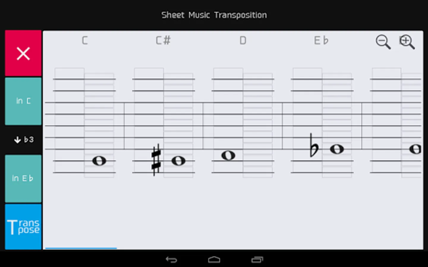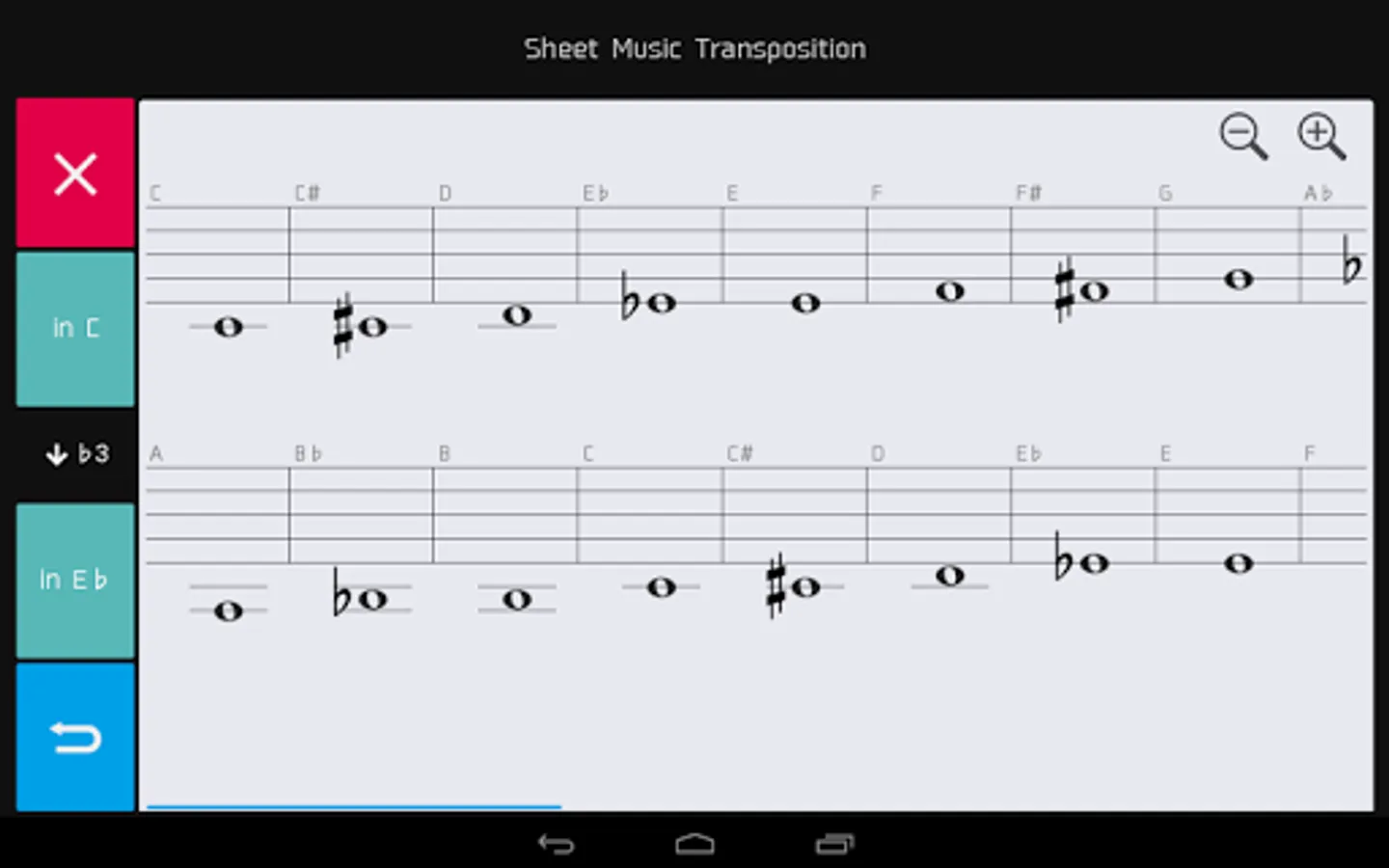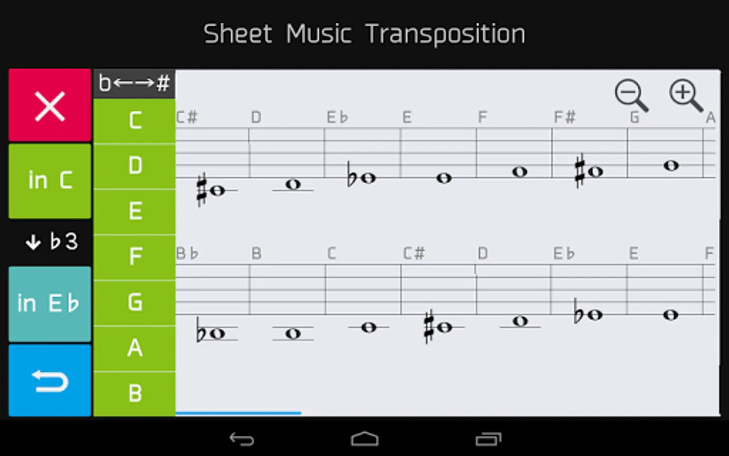 For example, if you want to transpose from piano to alto sax, the input key "C", the output key, set the "Eb".