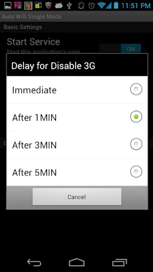 This application automatically turn mobile data communication(3G/LTE) off when Wifi is connected.And, Automatically turn mobile data communication on when Wifi is disconnected.