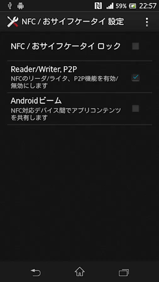 · NFC is invalid, to select "Setup of the NFC" from the upper right menu, please enable NFC.