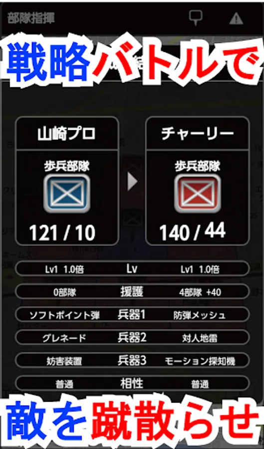 Status of troops in combat (attack power / defense force), level, its own territory the number of surrounding, equipped with weapons, will vary depending on compatibility with the enemy troops.