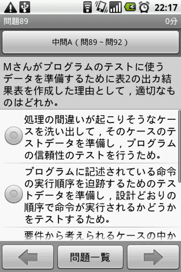 ・問題番号(画面右上の問題xxの部分)を「長押し」すると、該当試験問題の解説ページがないかWeb検索を行います。なお、この機能はかならずしも解説ページを表示するものではなく、あくまでインターネット上を「試験名」「実施時期」「問題番号」で検索をするだけです。