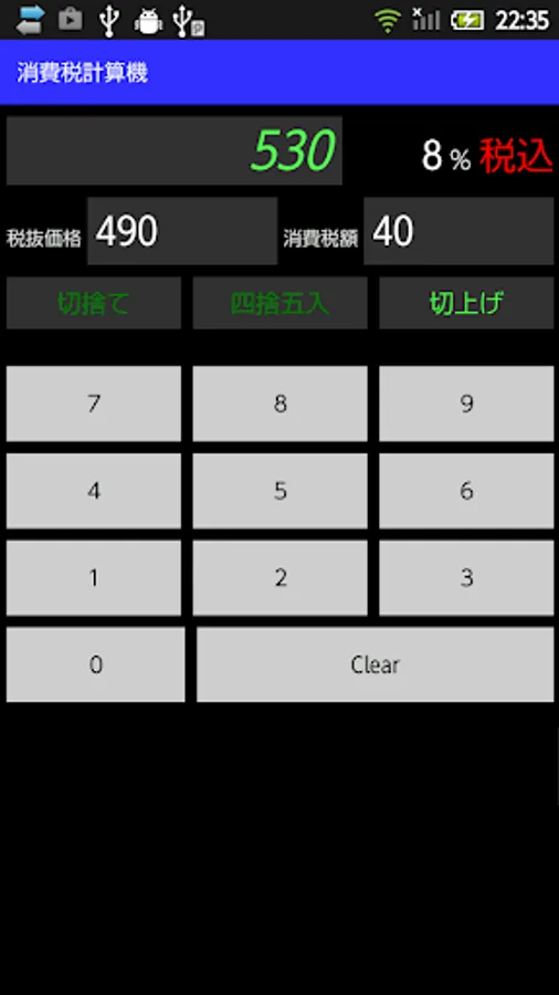 This is the app to calculate the consumption tax, the treatment of fractional post-decision (truncated, rounded, rounded up) a,