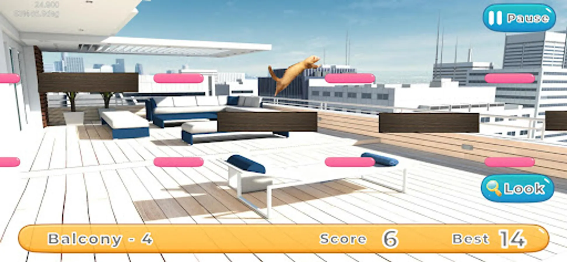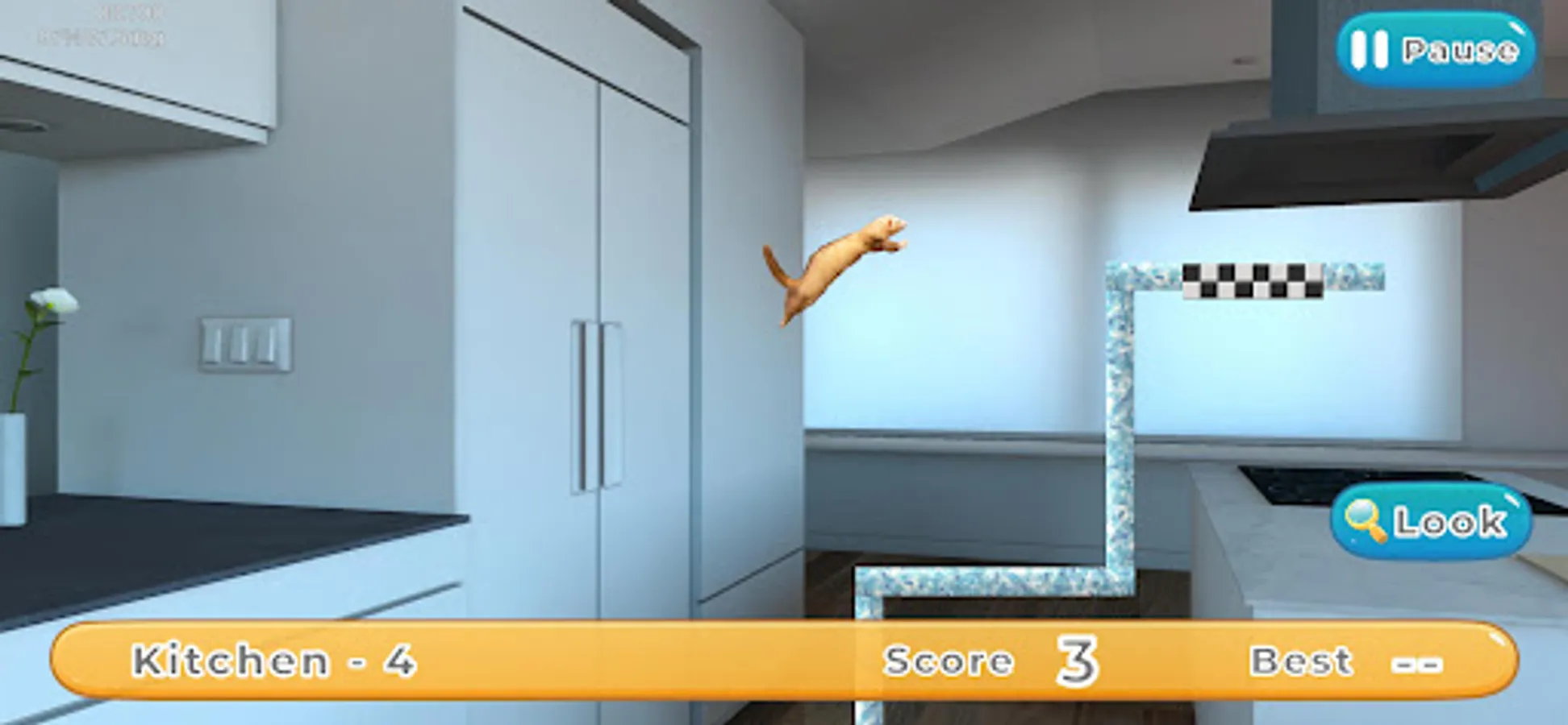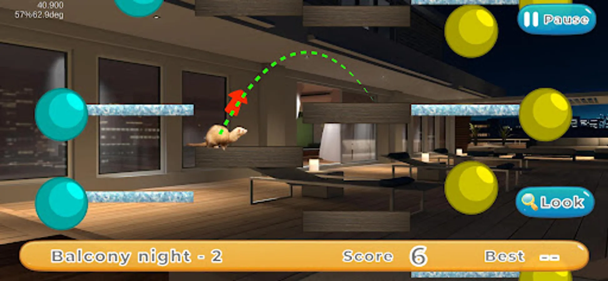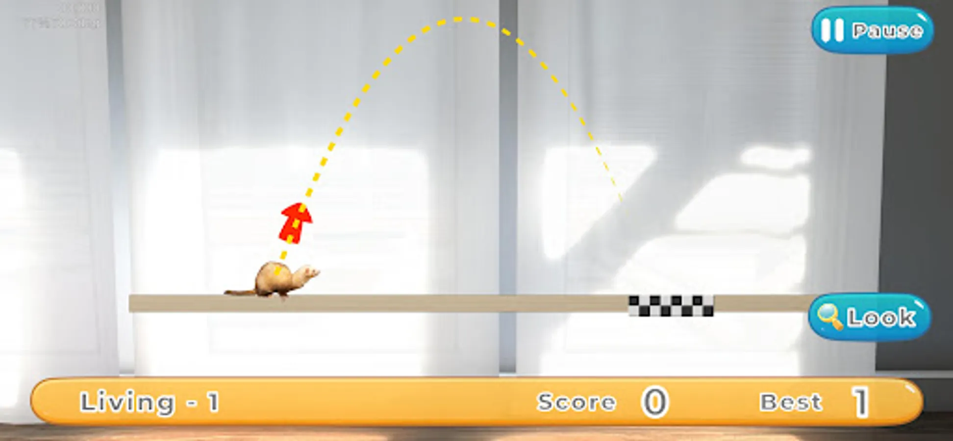 Press and hold the screen to charge the ferret with jumping power, then release your finger to make the ferret jump in the direction of your finger.
