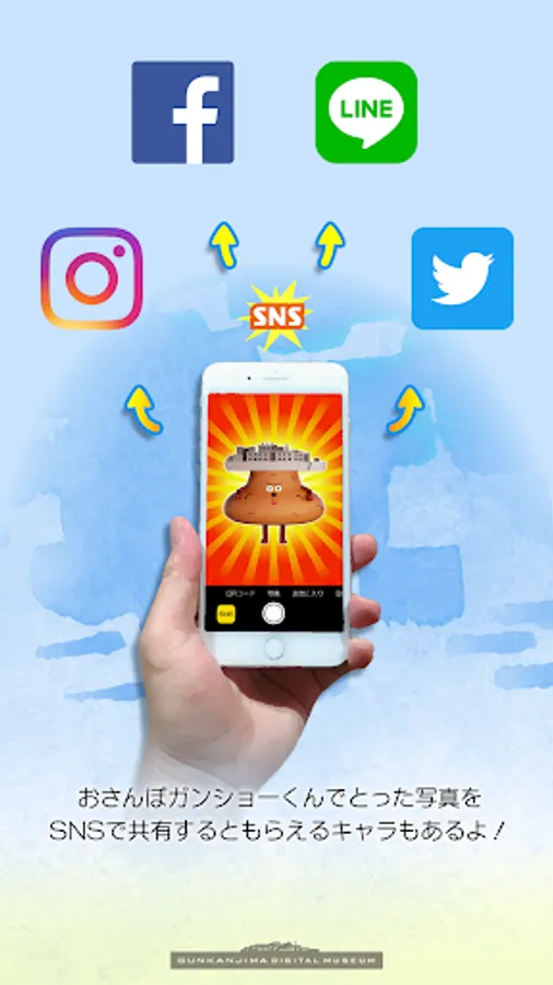 Take AR photos anywhere at home with "Gunkanjima Gunsho-kun" outside!
