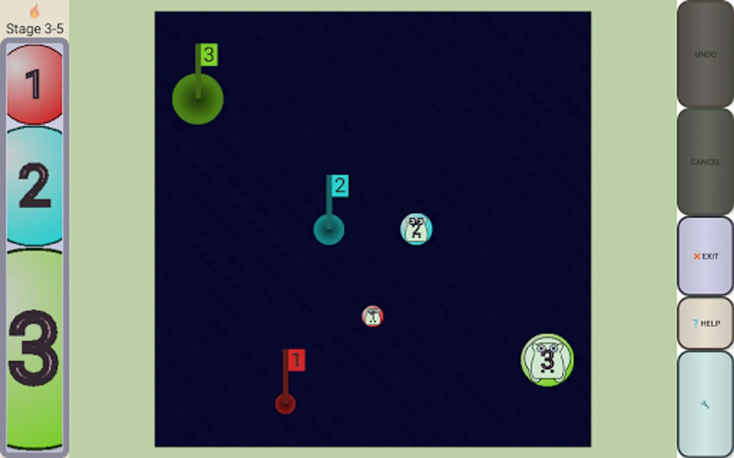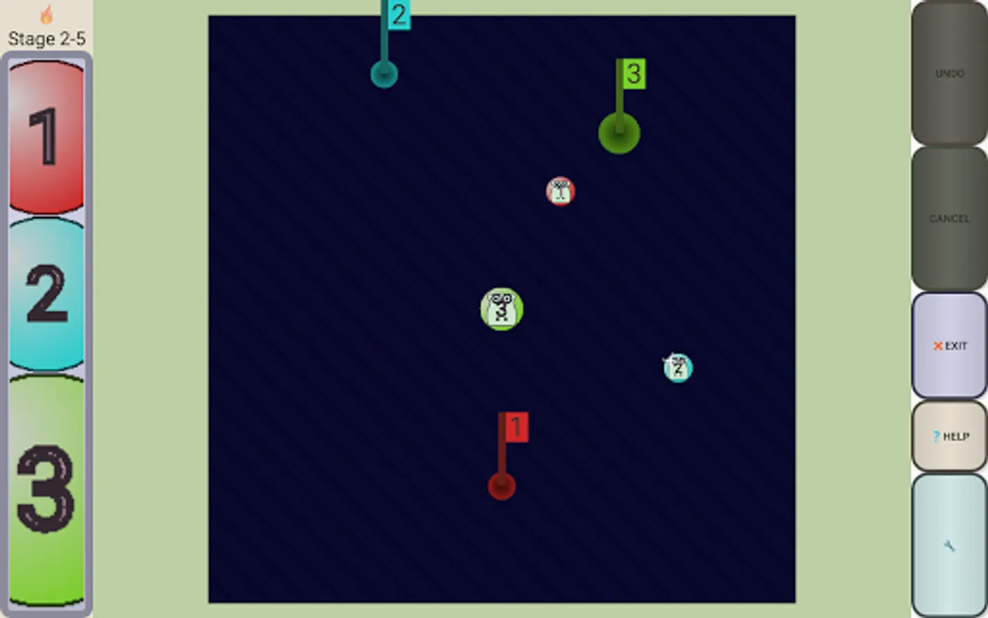 Move the balls scattered on the table and place them to the flag circle with same numbers.