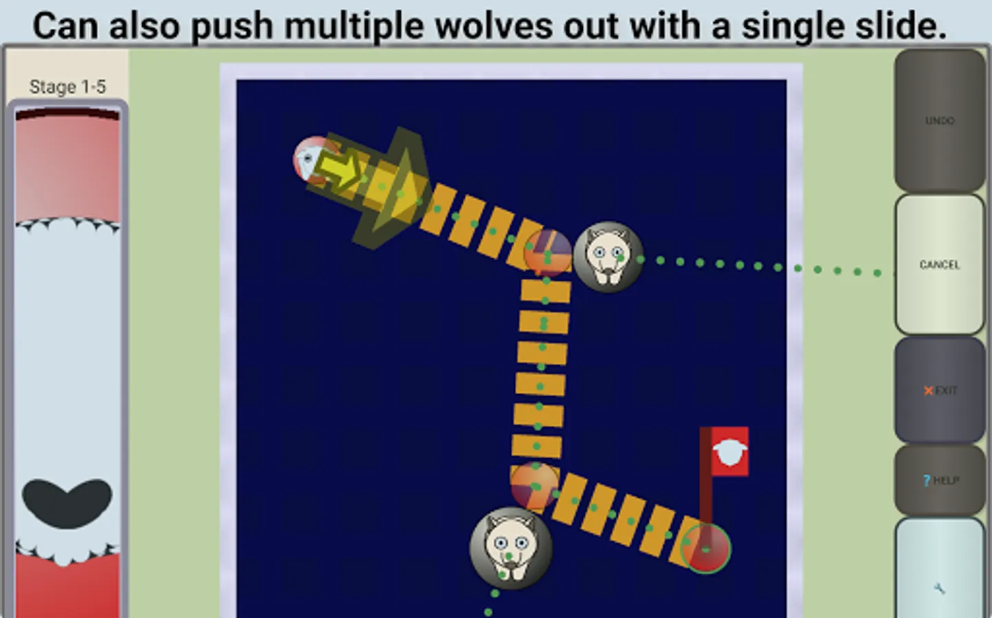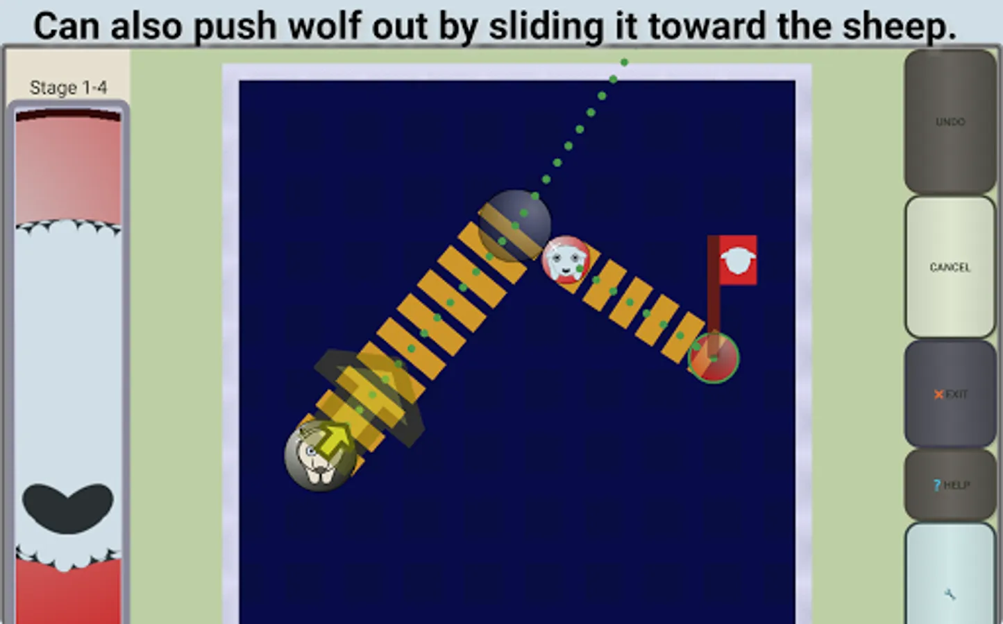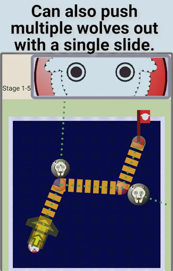 Can also push wolf out by sliding it toward the sheep.