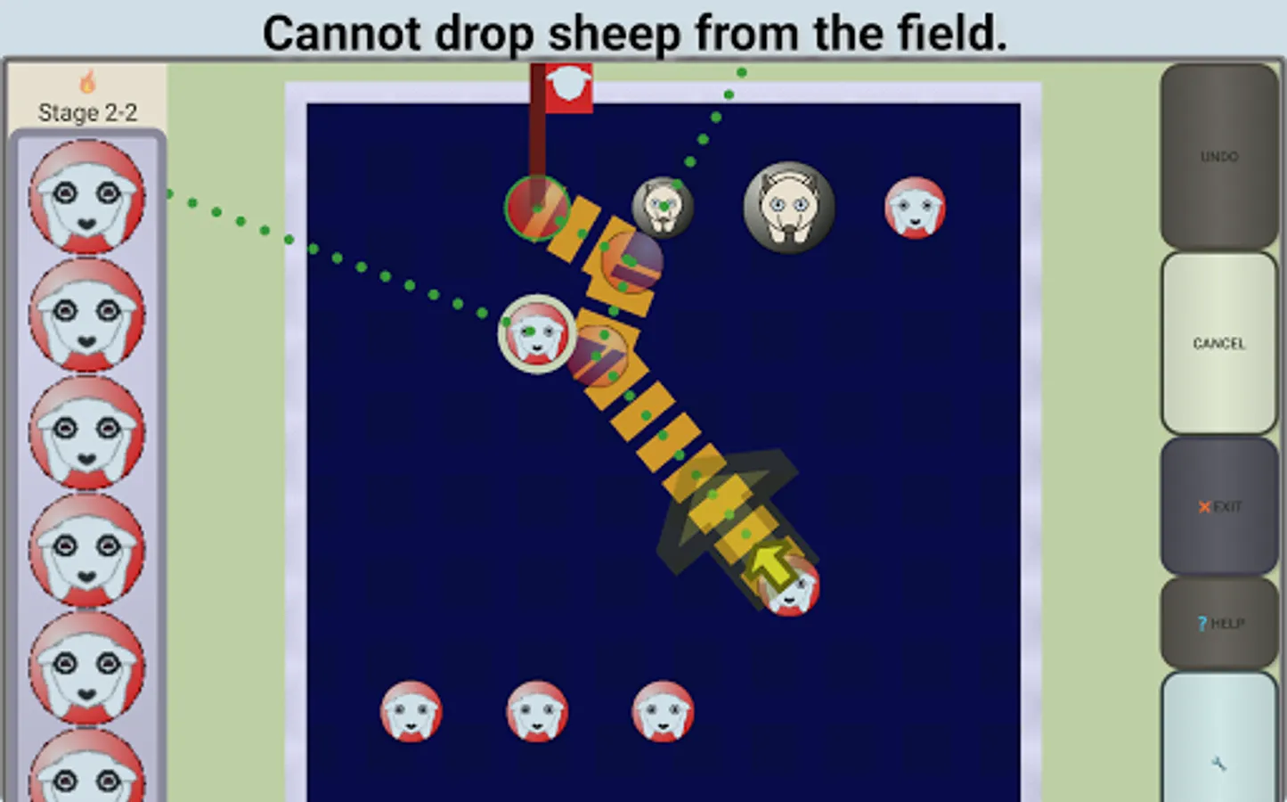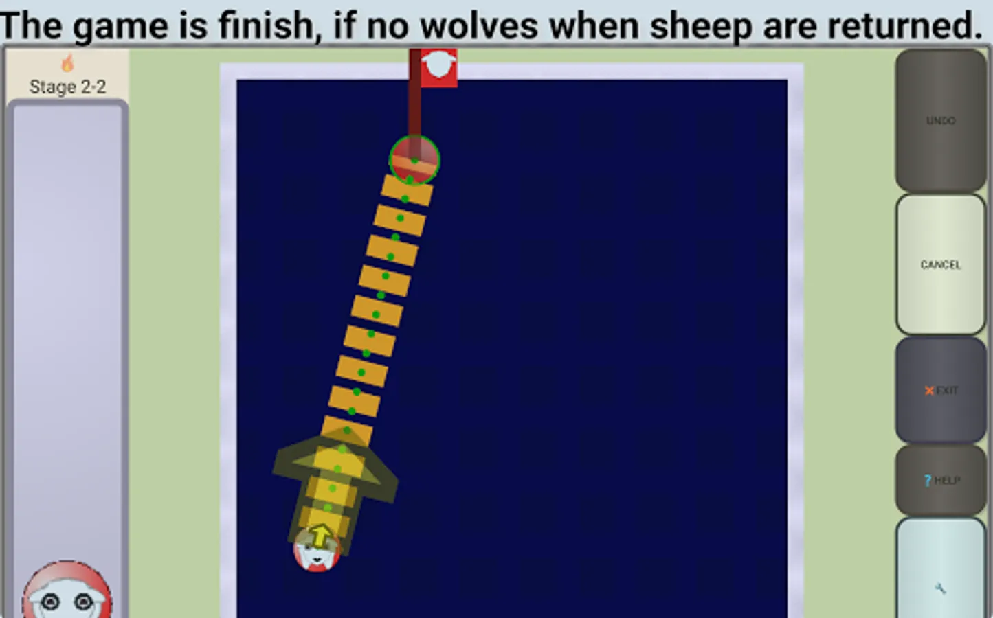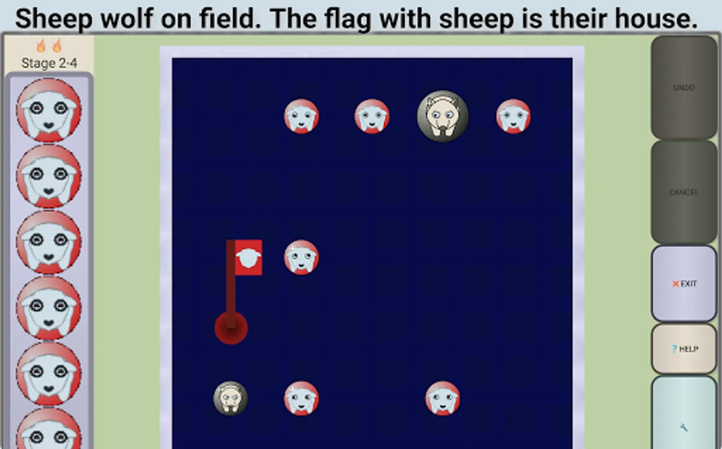 Can also push wolf out by sliding it toward the sheep.