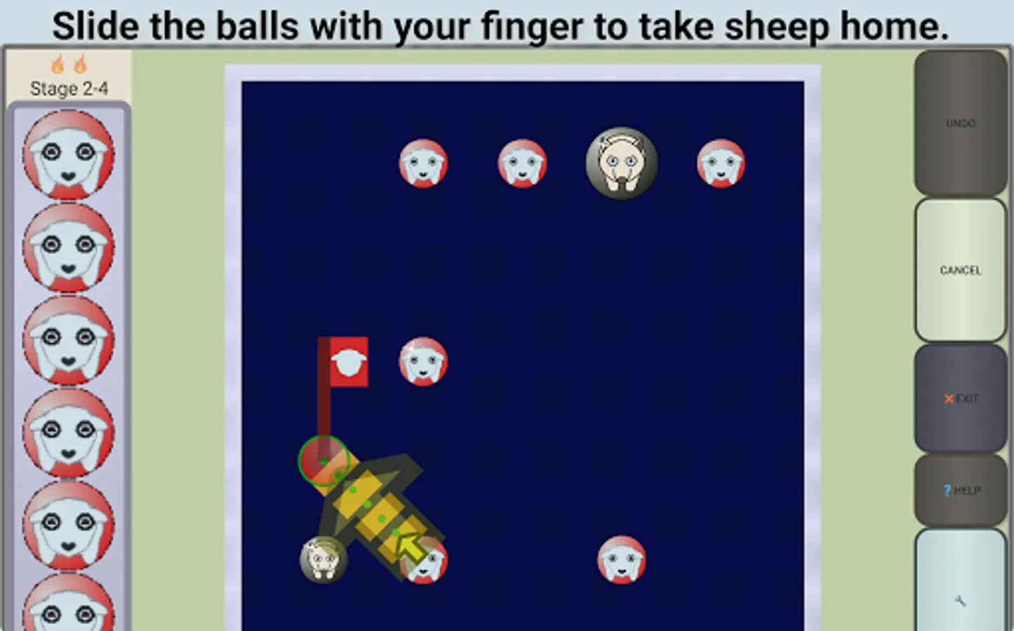 Slide the balls with your finger to take sheep home.