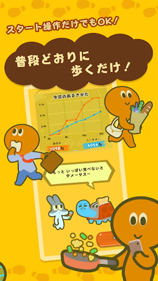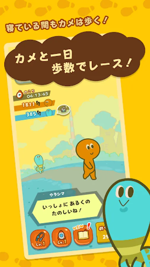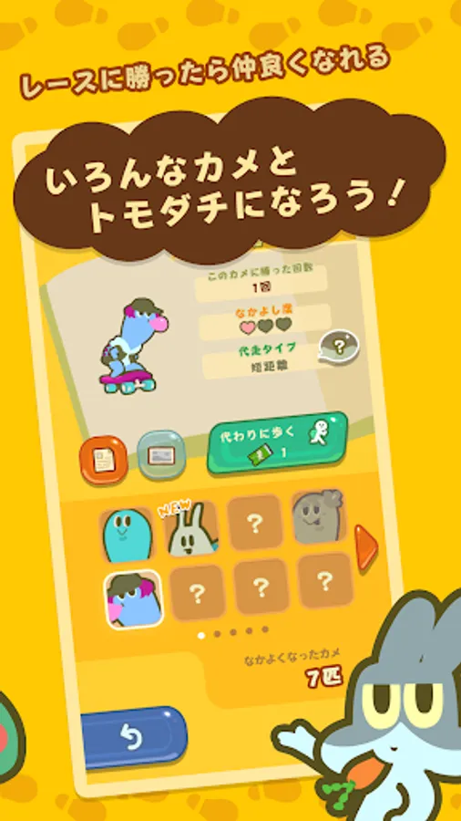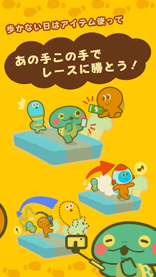 "Take the number of steps! Turtle Sanpo" is a game where you can use the pedometer function of your smartphone to run a "walk race" with various turtles.