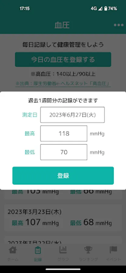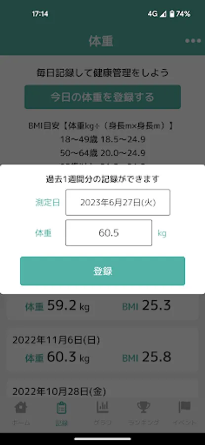 In addition to the number of steps, you can also record your weight and blood pressure daily and check them in a graph.