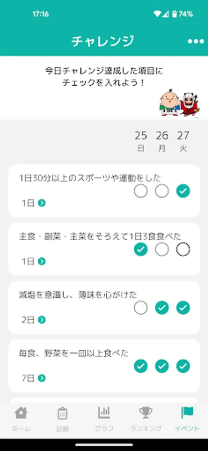 You can earn points by participating in health activities such as walking and medical examinations, and by participating in health events.