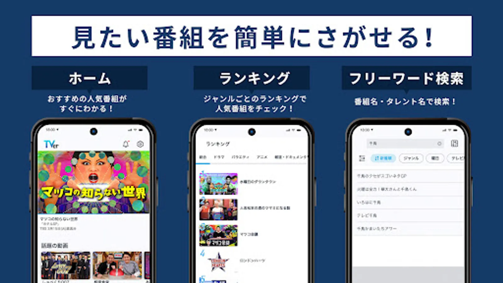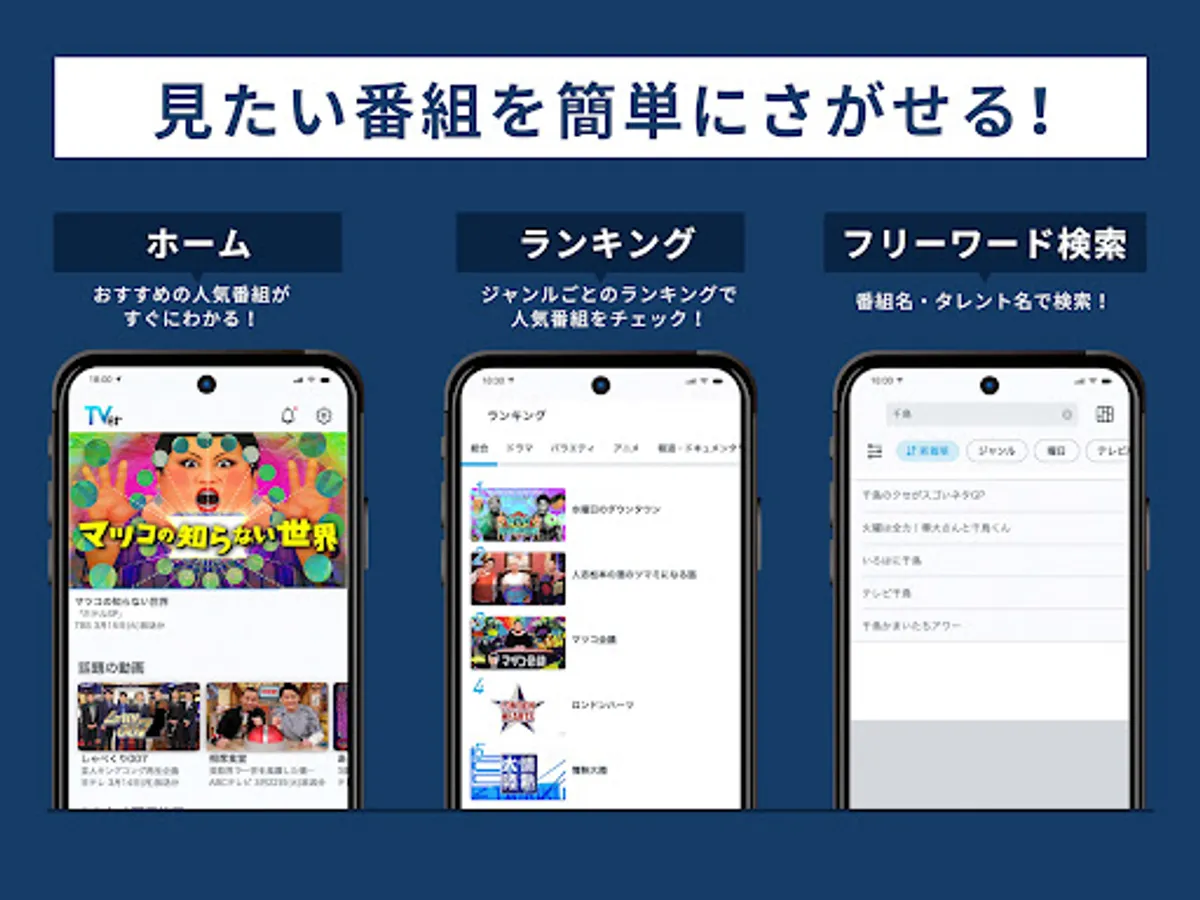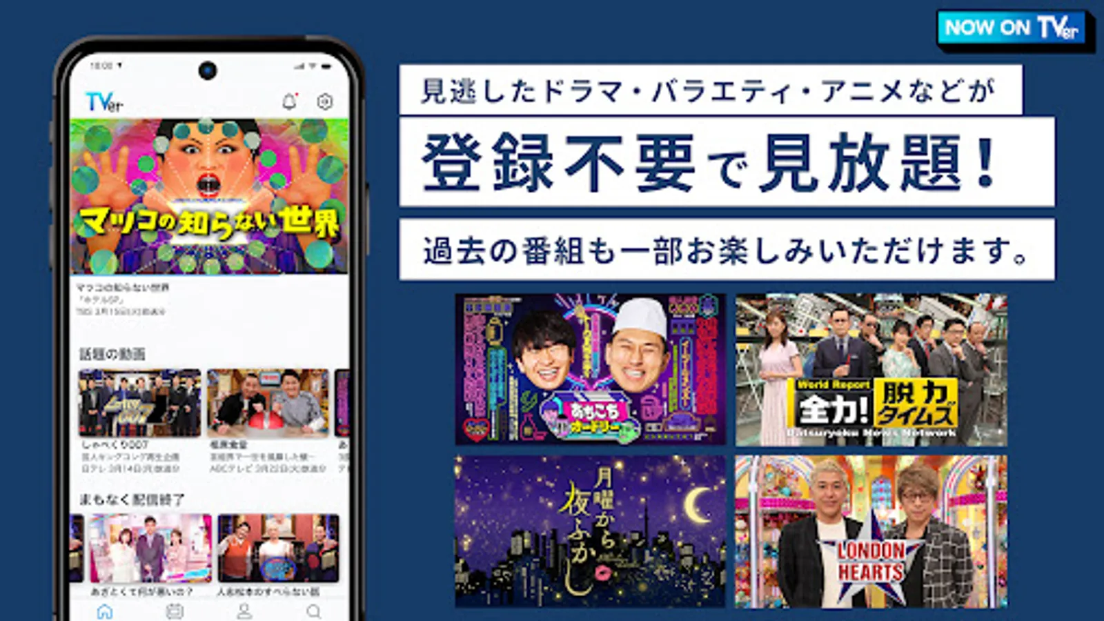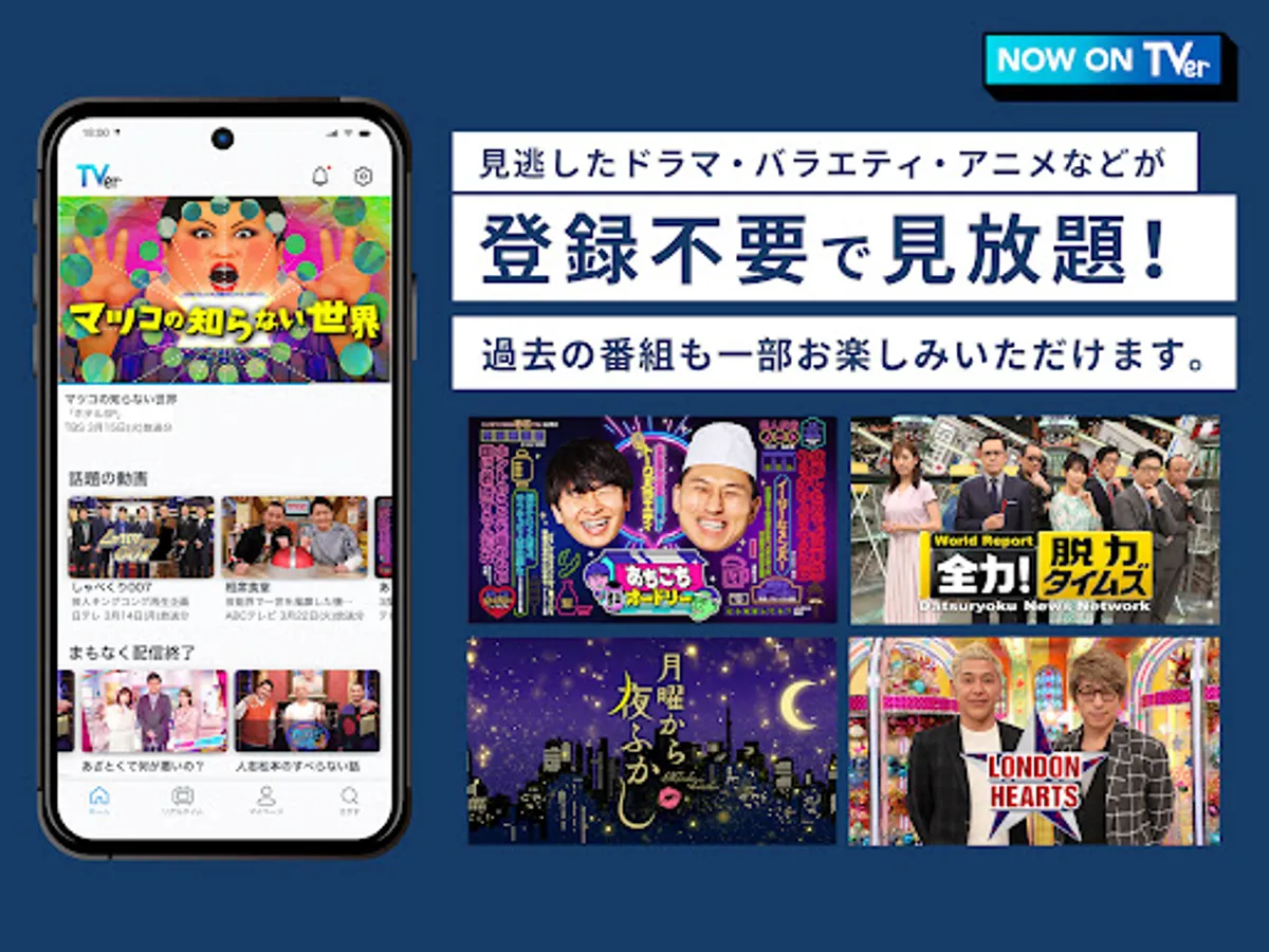 On "TVer", you can watch programs such as dramas, variety shows, and animations that you usually watch on your computer, smartphone, tablet, or TV.
