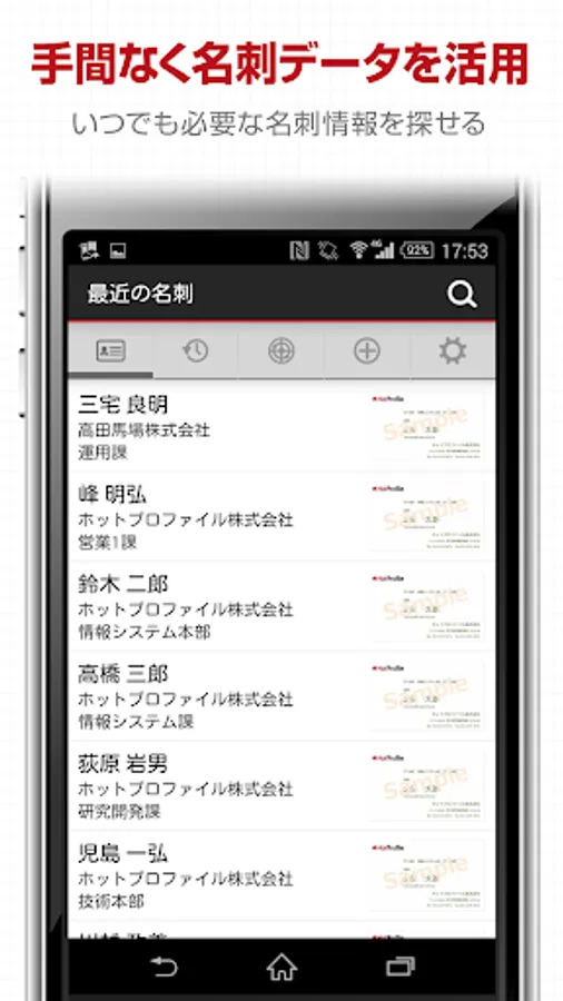 Business card management, business card and report management app for the sales support tool "HotProfile".
