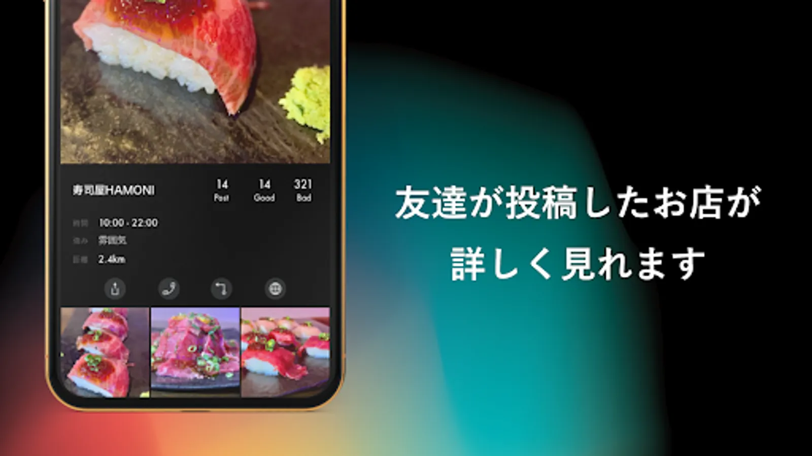 As soon as you launch the app, you can find the gourmet food near you from everyone's fashionable photos and reviews.