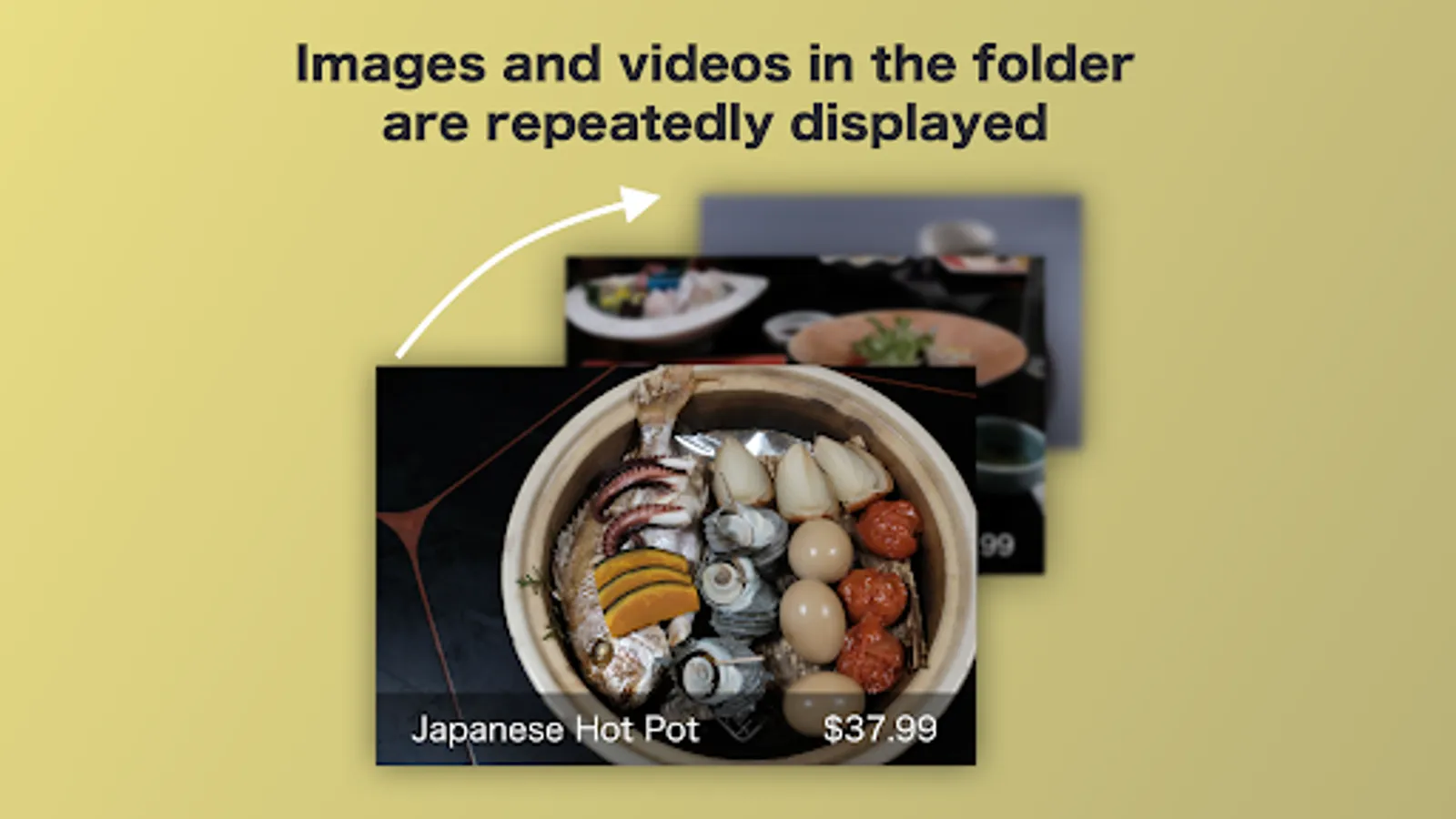 This app can be used in many situations: digital sign board; digital restaurant menu board; digital advertising poster board; digital information display; online photo frame/picture frame; infinite loop of photo slideshow. Google Drive signage tool can help your work.