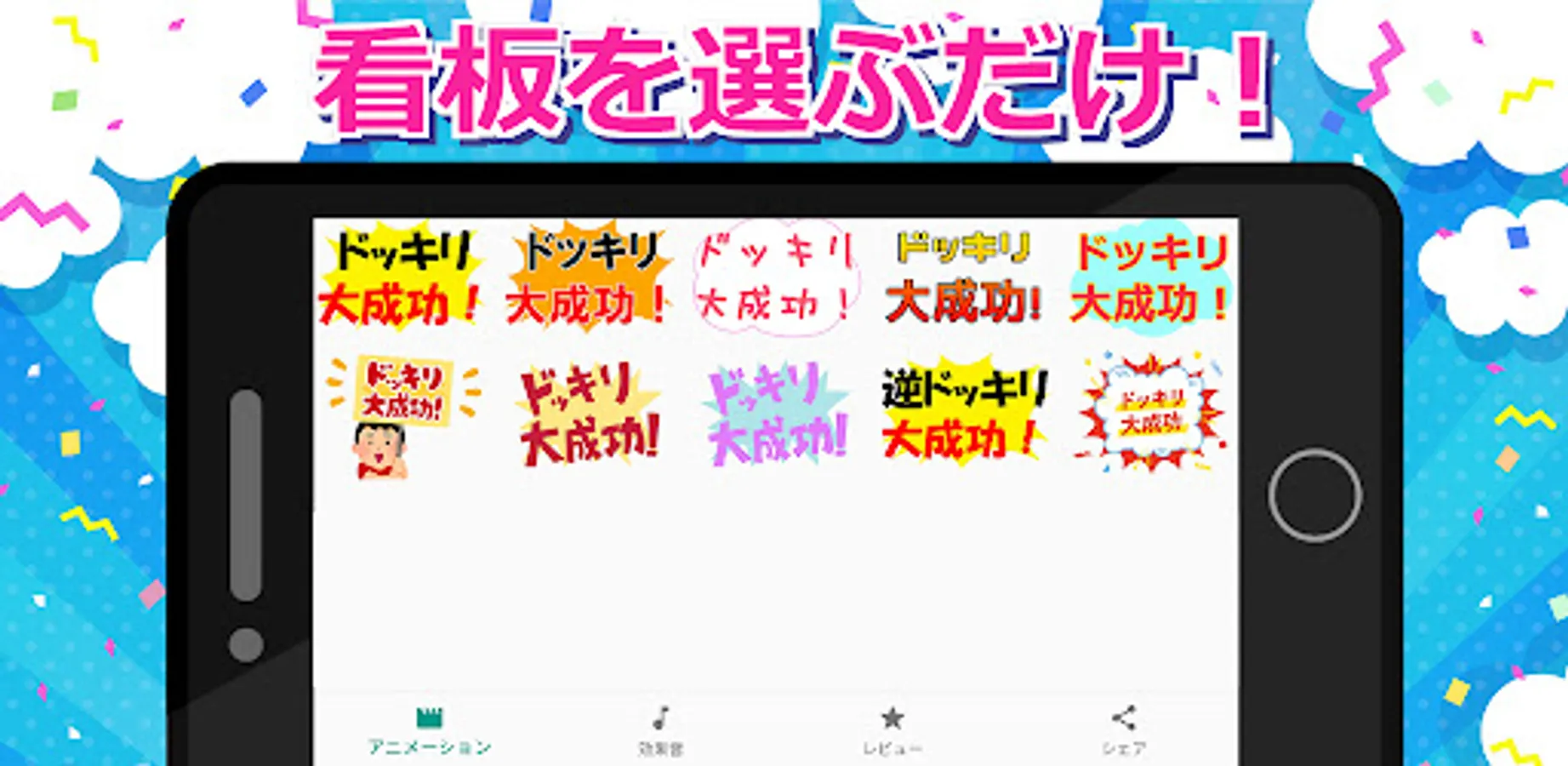 You can choose from 11 signboard designs, 11 animations, and 13 sound effects.