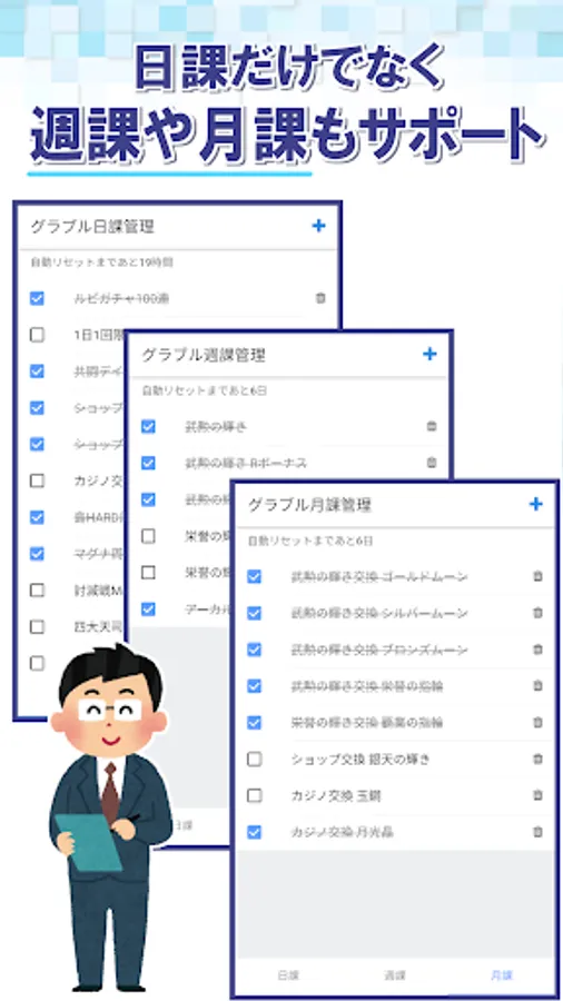 - Manage daily, weekly, and monthly tasks together in a Todo list