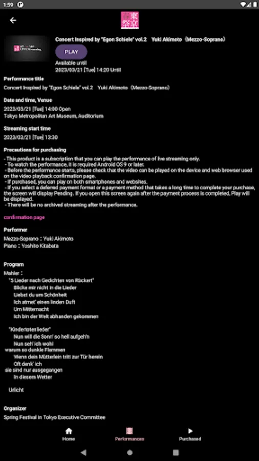 This app will stream the live performances of classical music delivered by the Spring Festival in Tokyo.